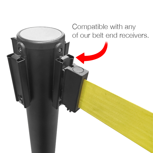 The Magnetic Receiver attaches to any of our belt barrier splines. Simply slide the receiver onto a spline and lock into place with a screw at the bottom of the receiver. Once in place you can easily use your magnetic belt ends from other stanchions or even from wall mounts. Additionally, this allows you to quickly and easily combine different items with a simple magnetic end. If you have an uncommon stanchion or even some other item that you want to connect to your stanchion, you can easily do it with this simple adapter.